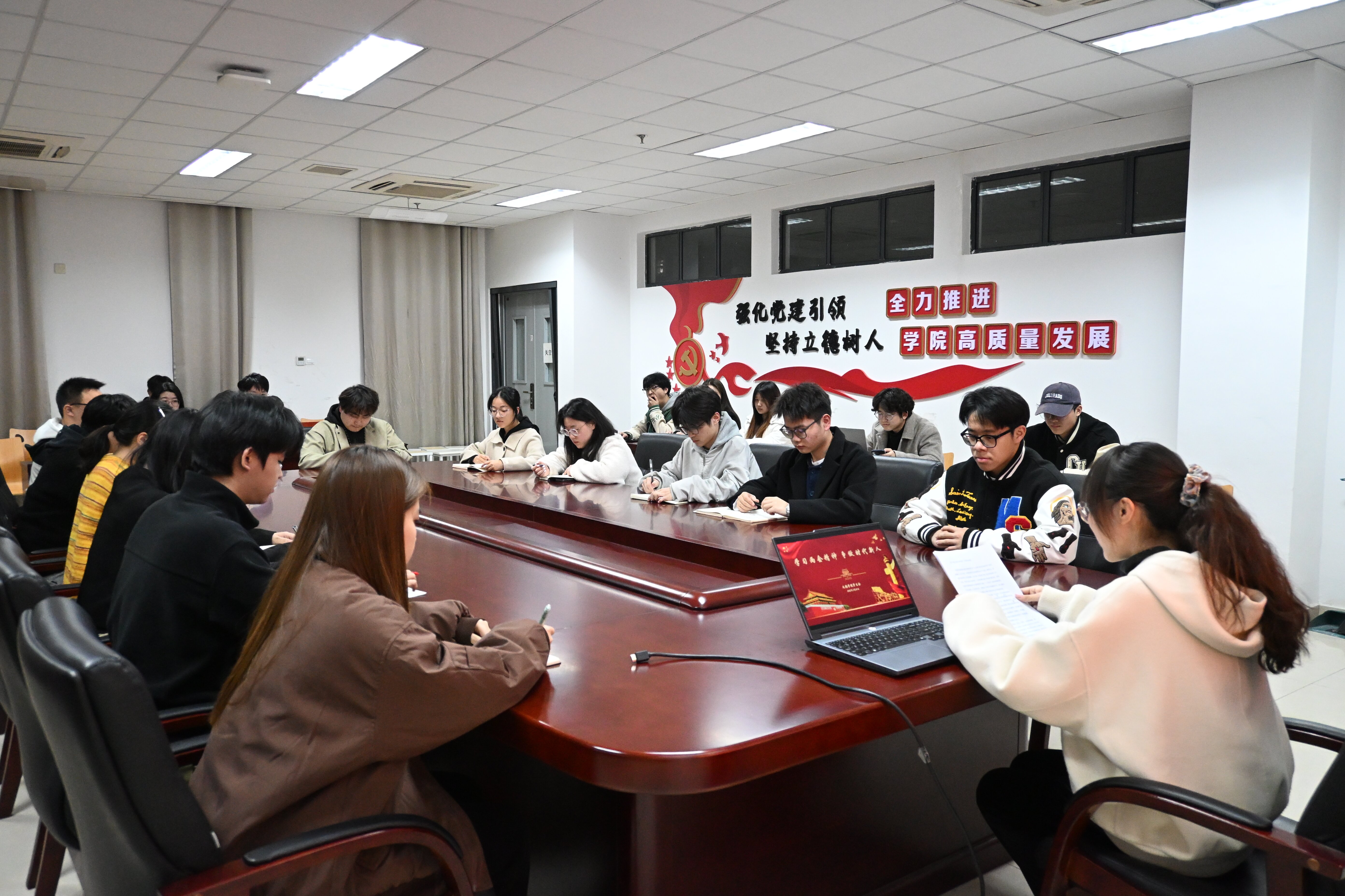 会上,校学生会成员张乐彤领学《政府工作报告》,对热点议题进行了细致梳理,帮助同学们清晰国家政策走向,深刻体悟国家发展与个人成长的紧密关联。与会人员集中观看了全国两会学习视频,并立足自身专业与校园生活实际,展开热烈讨论,分享心得体会。
