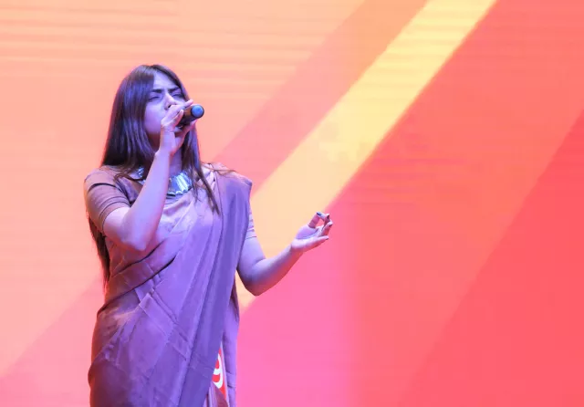 国际教育学院的SARKER ALFNURA演唱的《Masum Degiliz》,充满异域风情的服装与独特的嗓音相互交织,带来一场视觉与听觉的双重盛宴。