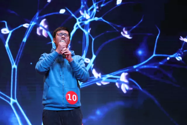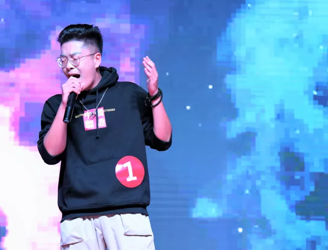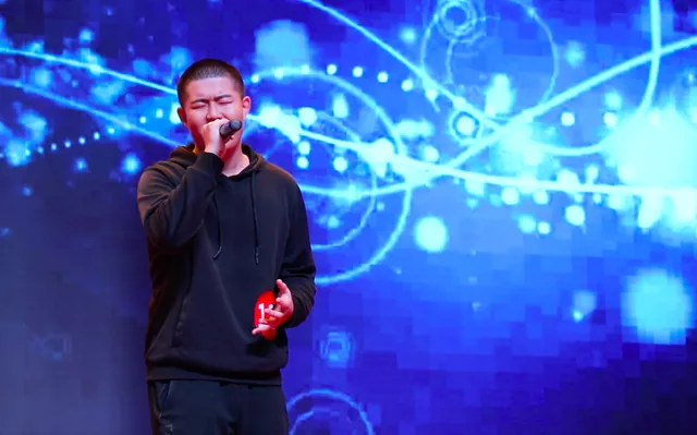 光的粒子与音符的跳动,燃烧了全场的气氛。一首来自大气与遥感学院杨滨键的《Chaos》,Rap与方言的结合,轰炸全场的feel,更彰显了我们青春的舞动与炫彩。
